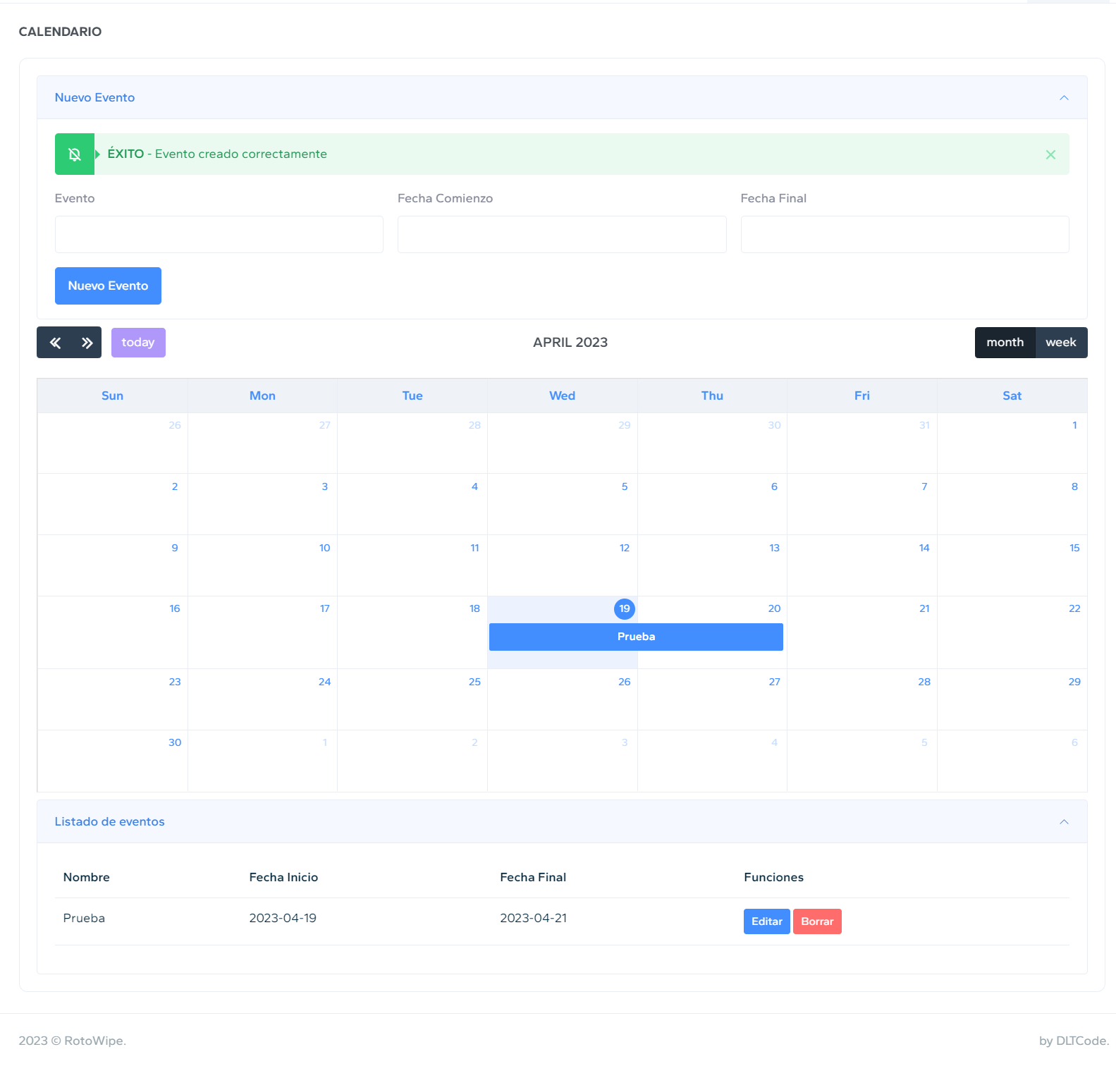 Cuando añadimos un nuevo evento nos aparece en la tabla del Calendario su nombre y los días donde hemos señalizado ese evento. Además, podemos editar los eventos y cambiar el nombre y la fecha, o incluso eliminar el propio evento.