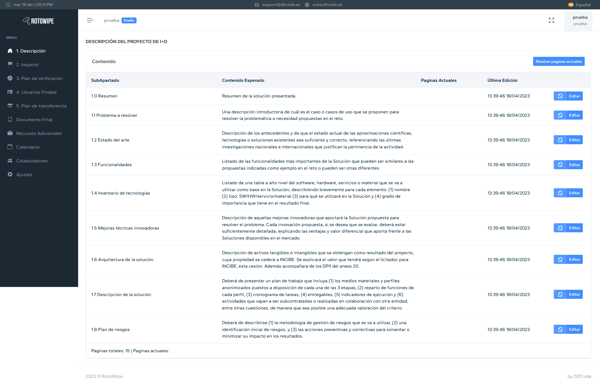 Nos redirigir谩 a Proyectos donde obtendremos nuestros proyectos creados, para abrirlo pulsaremos el